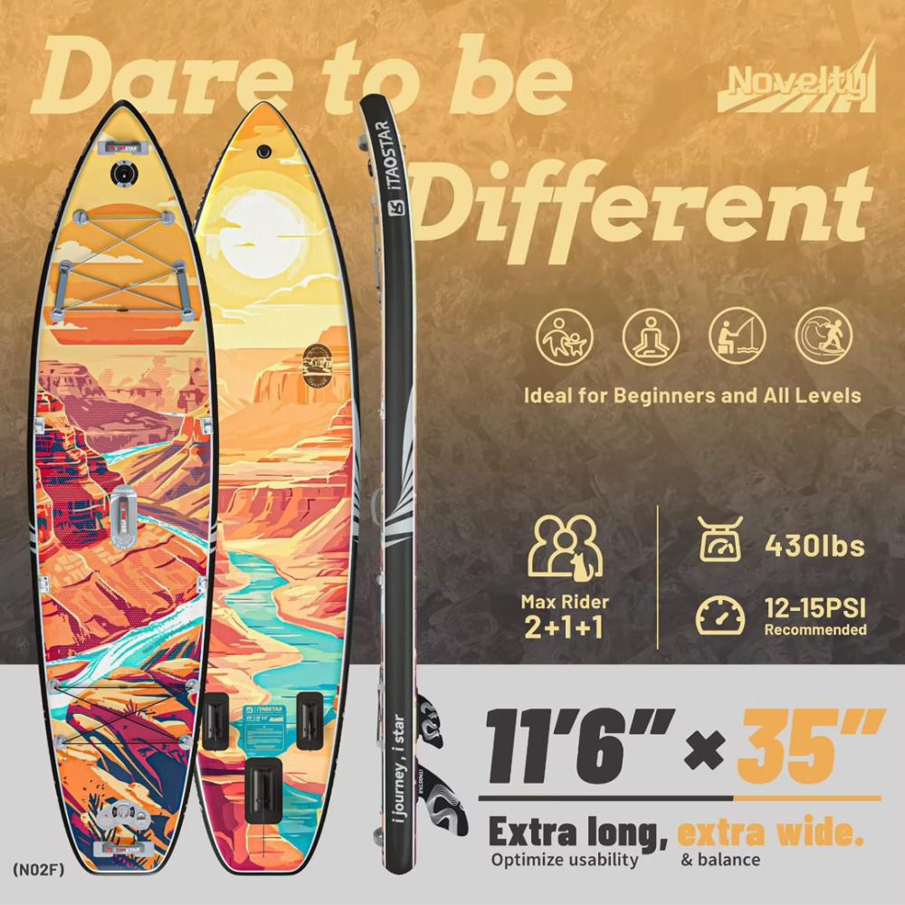 طول تخته: تختههای بلندتر (مثلاً 12 تا 14 فوت) سرعت بیشتری دارند و برای تورینگ و مسیرهای طولانی مناسب هستند. تختههای کوتاهتر برای مانور و موجسواری بهتر هستند.