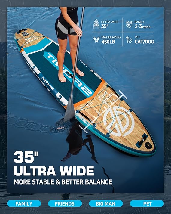 ایمن، بدون نشتی, باله هایی با قابلیت جداسازی برای هدایت بورد به صورت مستقیم, لایه ضد لغزش EVA بر روی عرشه, لایه مضاعف در زیر و روی پدل بورد برای سختی بیشتر